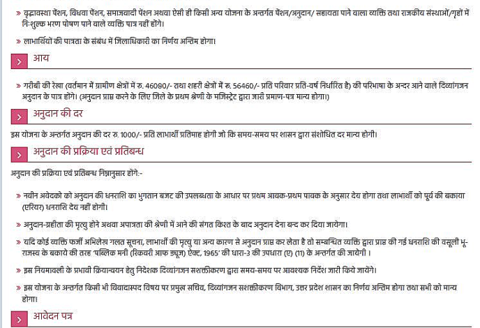 यूपी विकलांग पेंशन योजना आवेदन करने के लिए निम्नलिखित प्रक्रिया है :-