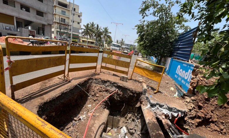 पिण्याच्या पाण्याची पाईपलाईन टाकण्यासाठी मोठा खड्डा खोदण्यात आल्याने वाहतुकीची गंभीर समस्या निर्माण झाली आहे. या कामामुळे रस्त्याचा मोठा भाग अडविला गेल्याने सार्वजनिक वाहतूक तसेच खासगी वाहनचालकांना मोठ्या अडचणींचा सामना करावा लागत आहे. हा मार्ग गोकाककडे जाणारा महत्त्वाचा दुवा असल्याने येथे दिवसभर मोठ्या प्रमाणात वाहनांची वर्दळ असते. सकाळ-संध्याकाळच्या गर्दीच्या वेळी परिस्थिती अधिक बिकट होत असून वाहतूक कोंडीचे चित्र वारंवार दिसून येत आहे.