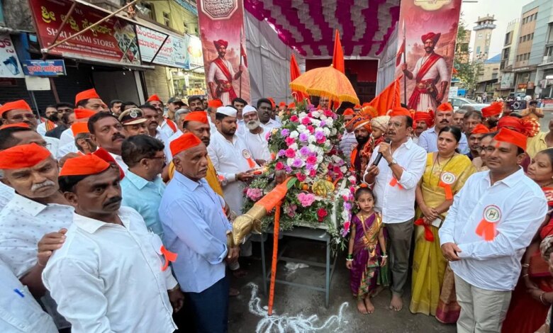 बेळगाव : बेळगावच्या पारंपरिक शिवजयंती चित्ररथ मिरवणुकीला सनईचौघड्यांच्या सुरात मंगळवारी सायंकाळी 6.30 वाजता सुरुवात झाली. नरगुंदकर भावे चौक येथून सुरू झालेल्या या पालखी मिरवणुकीमध्ये टाळमृदंगाचा गजर करीत वारकरी सहभागी झाले होते. शिवप्रेमी तसेच लोकप्रतिनिधी यांच्या उपस्थितीत उद्घाटनाचा सोहळा पार पडला. मध्यवर्ती शिवजयंती उत्सव मंडळाचे अध्यक्ष अंकुश केसरकर यांच्या हस्ते पूजन करून पालखी मिरवणुकीला सुरुवात झाली.