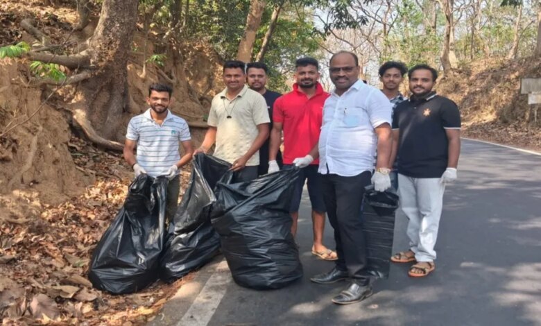 मळगाव घाटीत २० पोती कचरा गोळा करीत स्वच्छता मोहीम