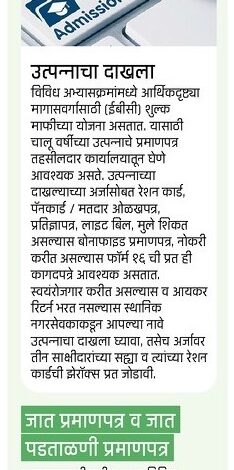 उत्पन्नाचा दाखला कॉलेज प्रवेशासाठी महत्वाचा