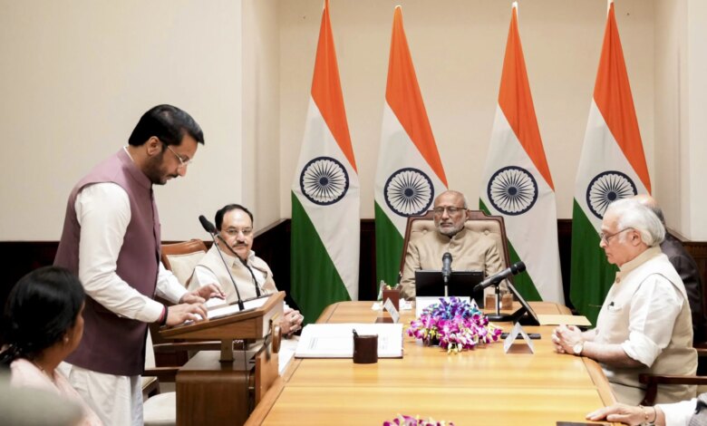 राज्यसभा अध्यक्ष सी. पी. राधाकृष्णन यांनी दिली शपथ : उपमुख्यमंत्री सुनेत्रा पवार यांचीही उपस्थिती